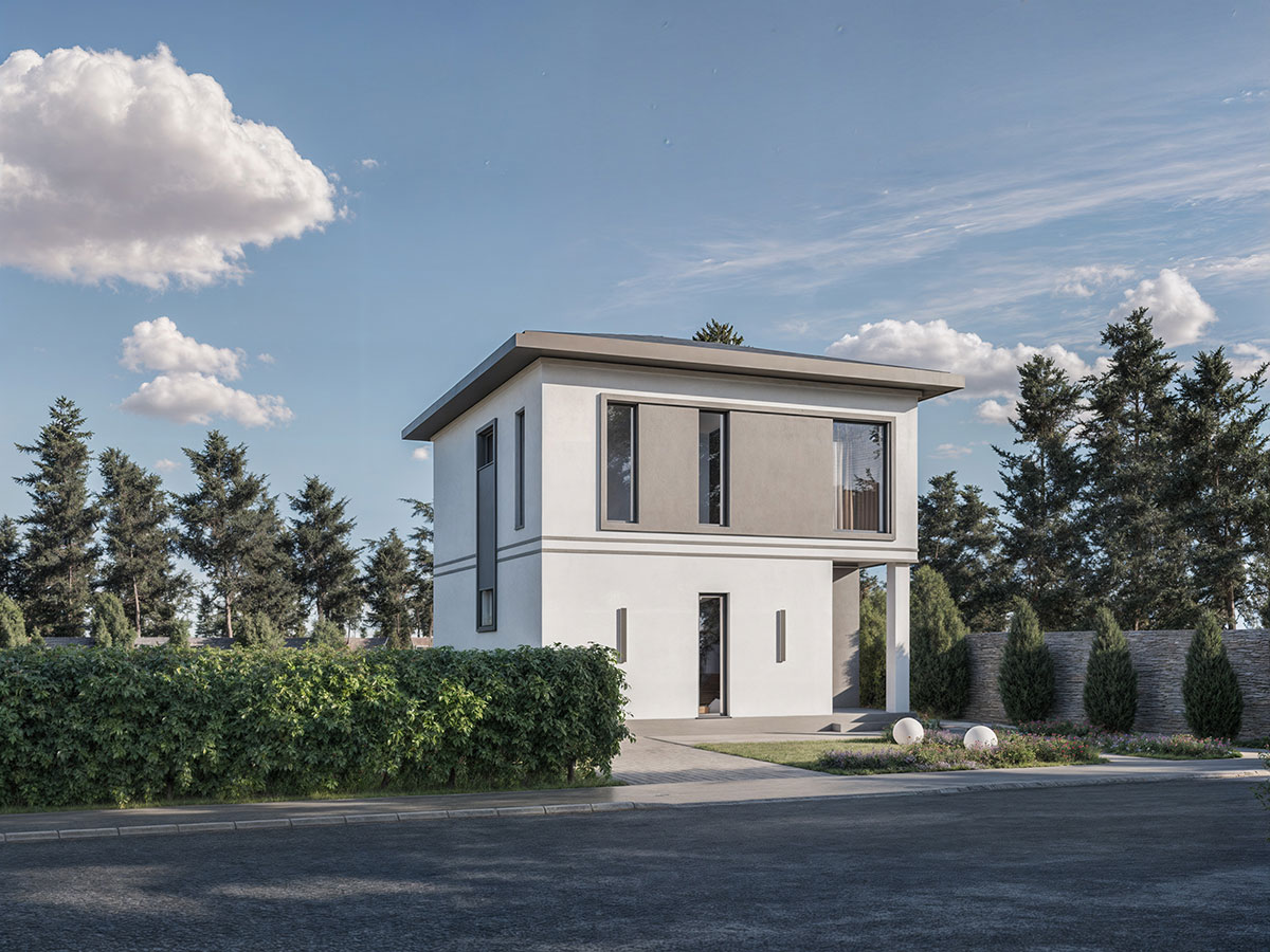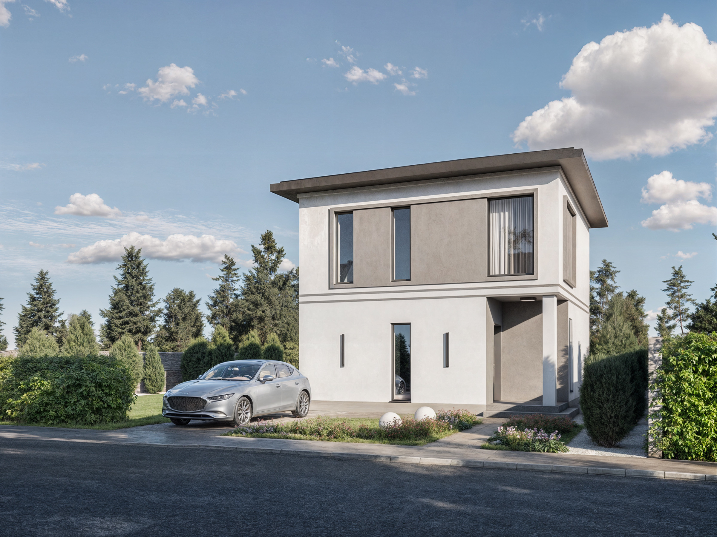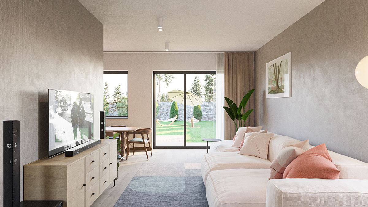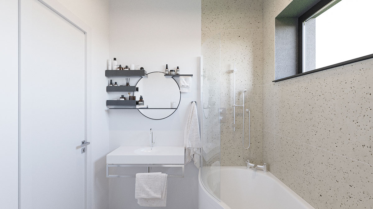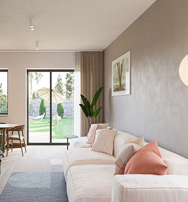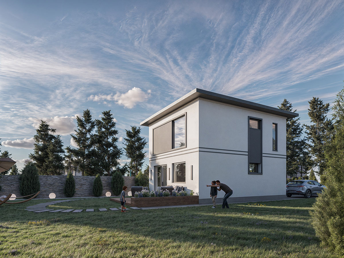 VILA ZEN beneficiaza de 3 camere, din care 2 sunt dormitoare, fiecare cu dressing propriu, living spatios, doua bai, bucatarie moderna, loc de luat masa si terasa.