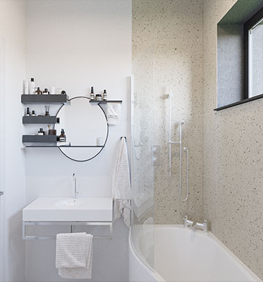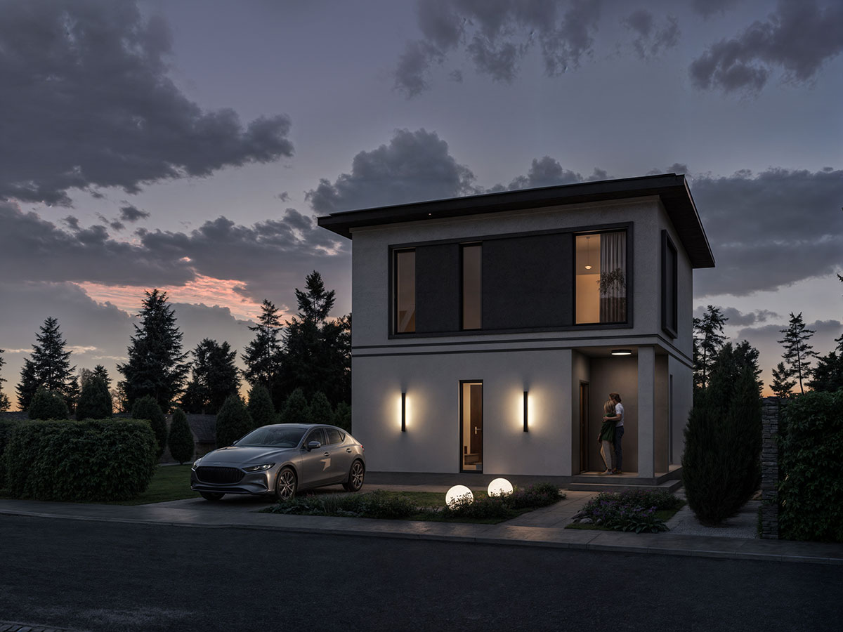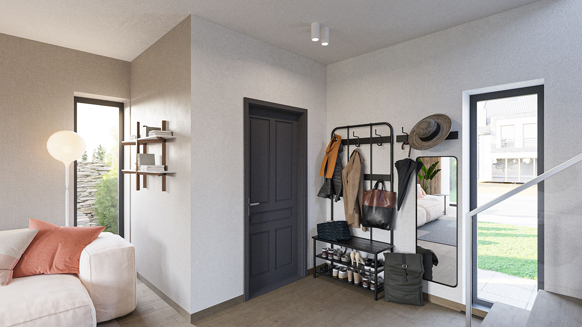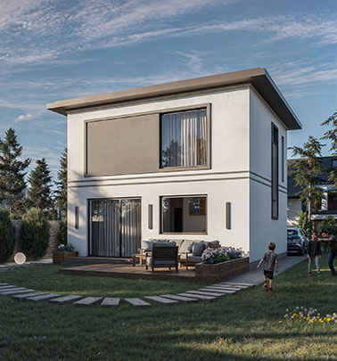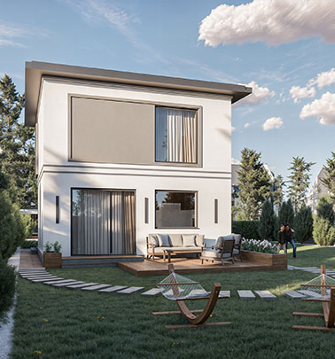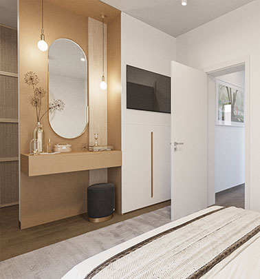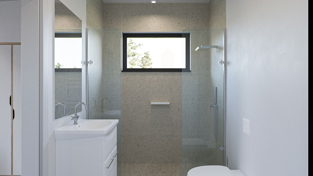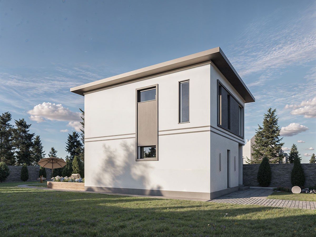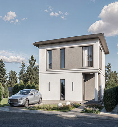 VILA ZEN beneficiaza de 3 camere, din care 2 sunt dormitoare, fiecare cu dressing propriu, living spatios, doua bai, bucatarie moderna, loc de luat masa si terasa.